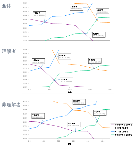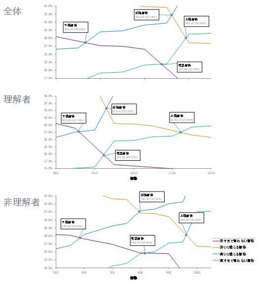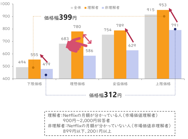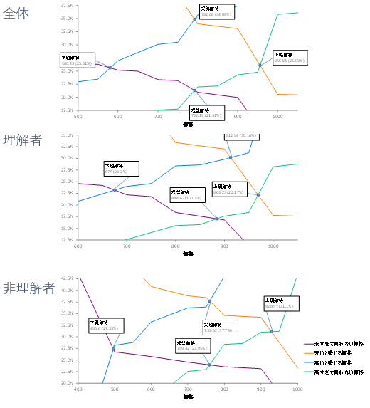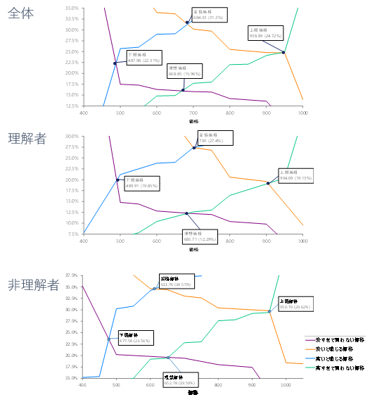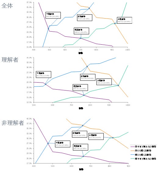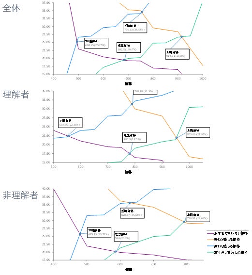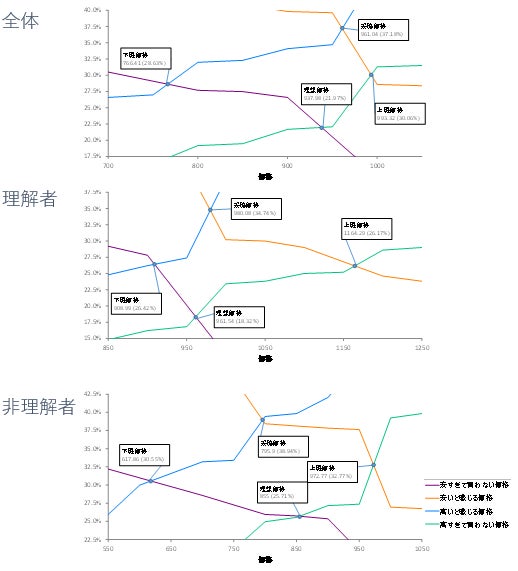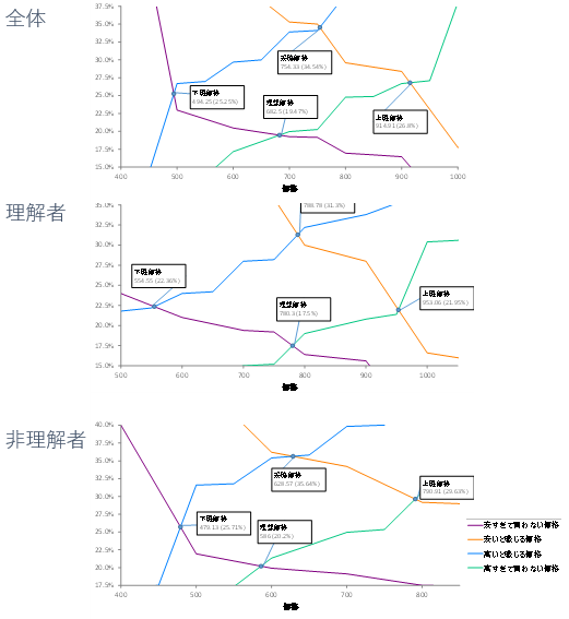 理解者の理想価格は780円、非理解者の理想価格は586円で約200円の差