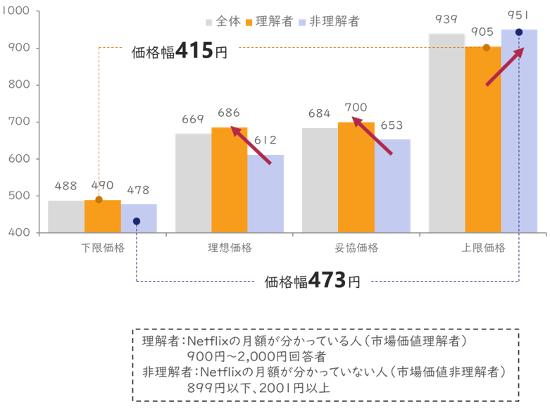 理解者の理想価格は766円、非理解者の理想価格は661円で100円以上の差