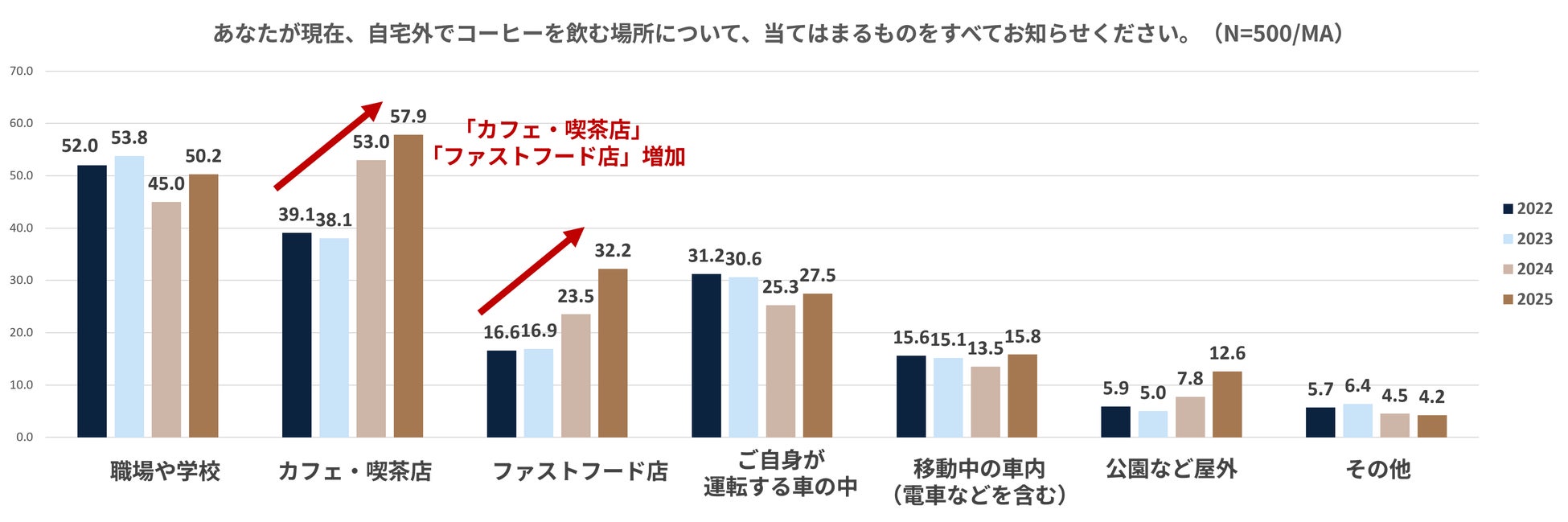 ■コーヒーを最も飲む場所は「自宅」 昨年度から5ポイント上昇