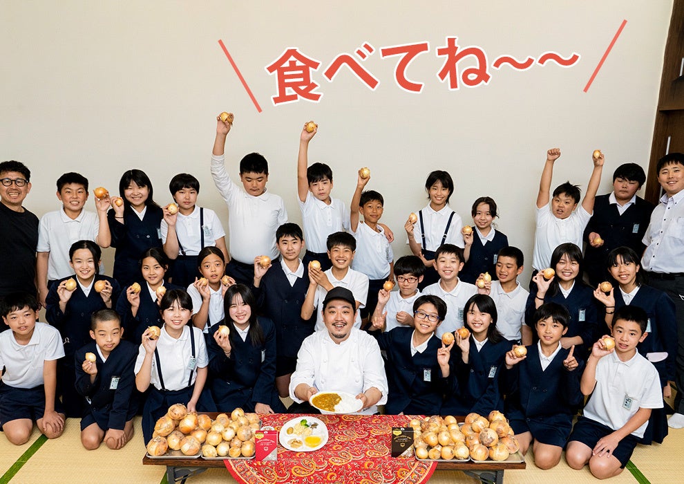 2023年度はその津奈木小の生徒が作ったフルーツのような甘さの玉ねぎを使い、インド・パキスタン料理専門店デリーと協業し、2種のレトルトカレーを完成させました。
