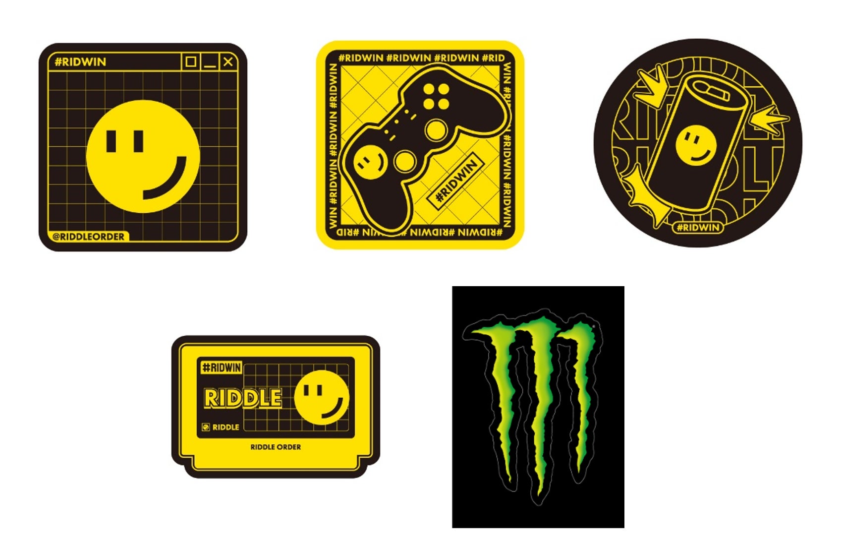 [1本購入] ステッカー5種(RIDDLE 4種+モンスターロゴ 1種) …各店4枚×5種(計20枚)