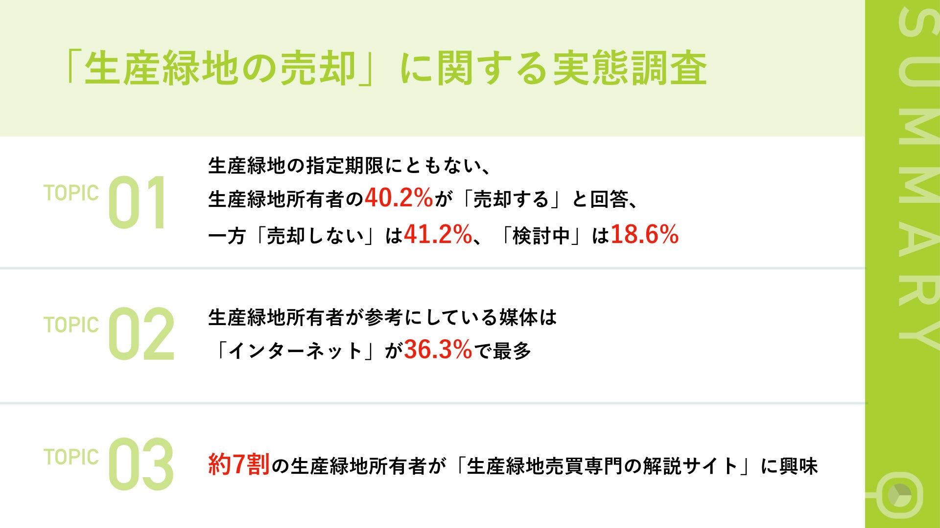 〜「生産緑地売買専門の解説サイト」に約7割が興味〜