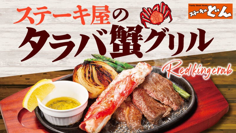 『ステーキのどん』では、冬の味覚の「タラバ蟹」とステーキを同時に楽しんでいただける冬季限定「ステーキ屋のタラバ蟹グリルフェア」を、2023年12月15日(金)から『ステーキのどん』全店舗で実施いたします。