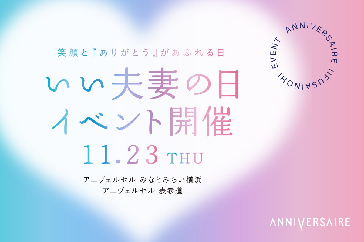 全国でゲストハウスウェディングを中心に、様々な記念日プロデュース事業を展開するアニヴェルセル株式会社は、11月23日を “いい夫妻の日”として2020年に制定いたしました。本年の“いい夫妻の日” 11月23日(祝木)には、夫妻が感謝を伝え合い、笑顔があふれるイベントを「アニヴェルセル 表参道」、「アニヴェルセル みなとみらい横浜」の2店舗で開催いたします。