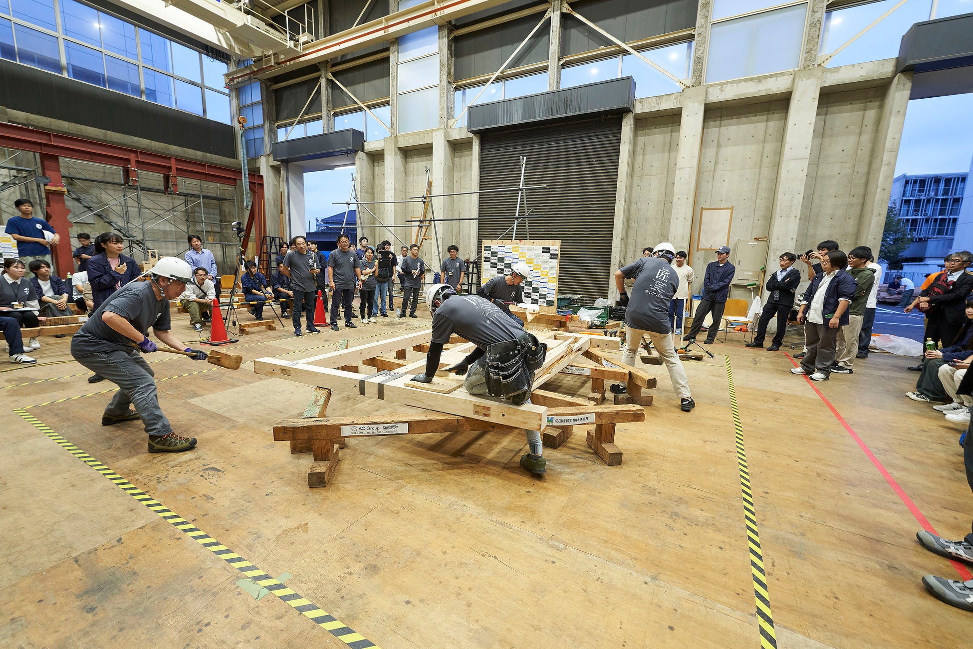 AQ Group(本社:埼玉県さいたま市西区、代表取締役社長:宮沢俊哉)は10月5日、6日にものつくり大学(埼玉県行田市)で開催された木造耐力壁の日本一を決める第7回「カベワンGP(グランプリ)」に参戦しました。AQ Groupを主体とする「AQチーム匠」は、東京大学木質材料学研究室・網中木材と決勝戦で対峙。大接戦を制し3年連続でトーナメント優勝を達成、耐力壁最強を証明することになりました。