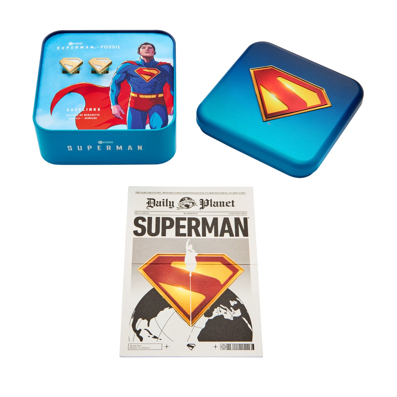 本コレクションには、スーパーマンのレガシーを取り入れることができるアクセサリーグッズ3種類も同時発売です。