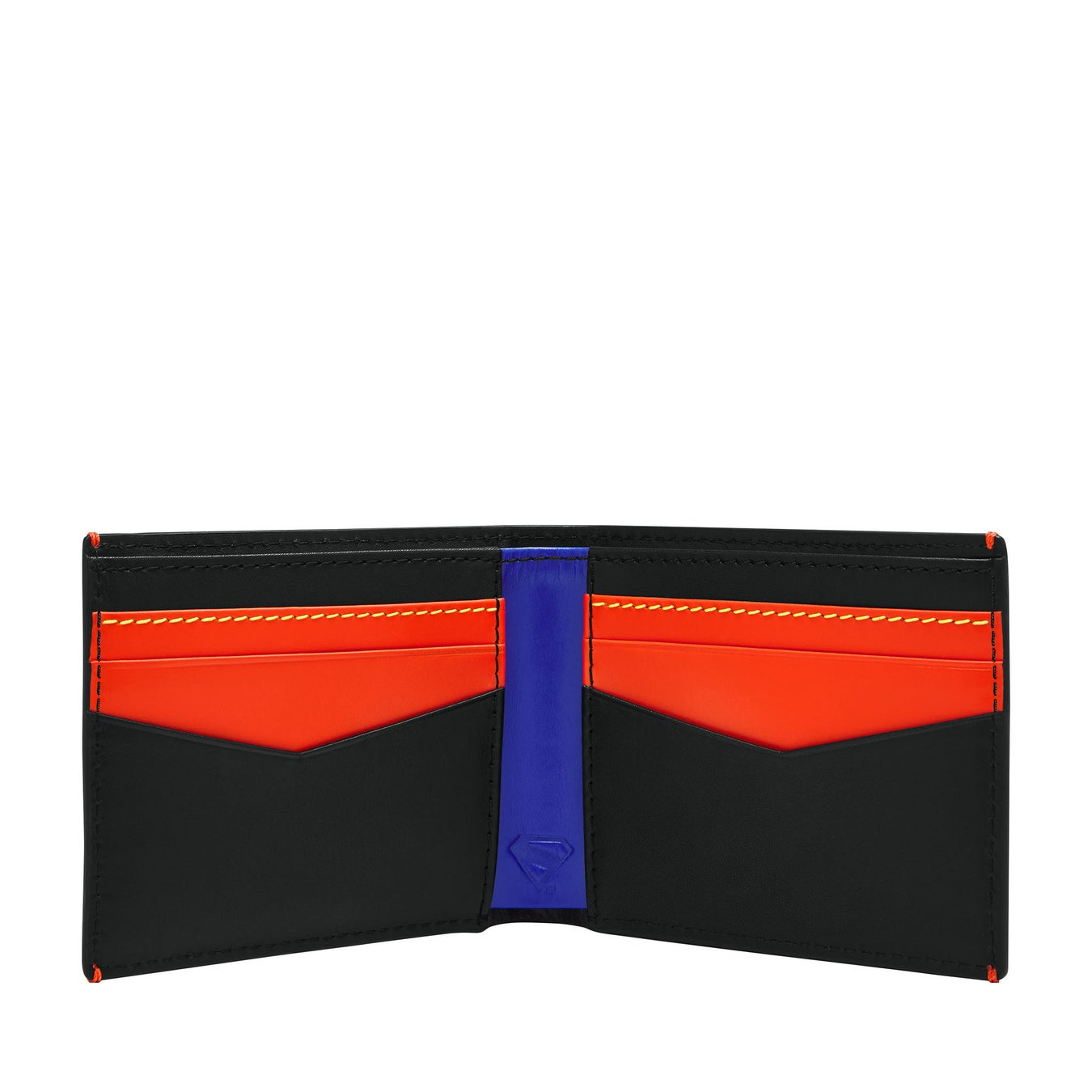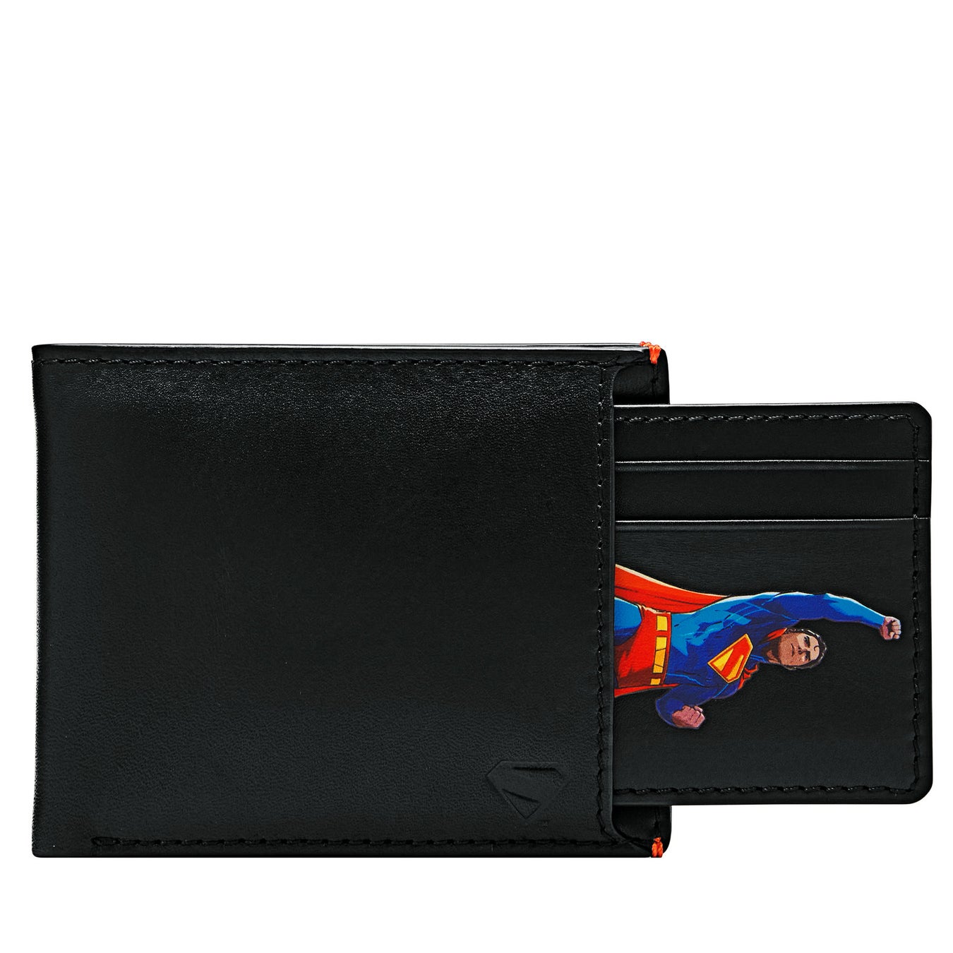 ブラックレザーにアイコニックな「S」のシールドエンブレムをエンボスした、スリークなブラックスタイルの2つ折り財布。内側はスーパーマンのアイコニックなカラーブロックと、「マン・オブ・スティール(鋼の男)」と呼ばれるスーパーマンの姿をあしらった取り外し可能なスライド式カードケースが付いたスペシャルエディション。