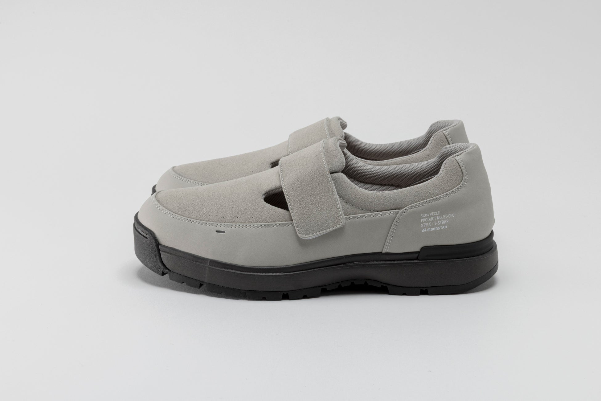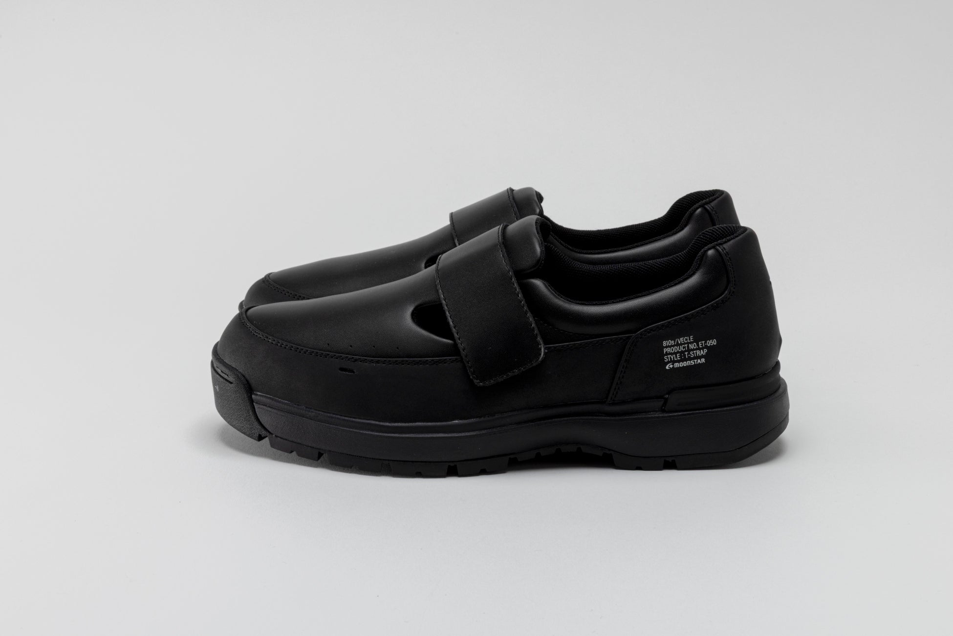 ユニバーサルデザインのノウハウを活かし、リハビリシーンに適したモデルをデイリーユースに。面ファスナー仕様の甲バンドを搭載し、脱ぎ履きがしやすい設計。ウォーキングテクノロジーを紐解き、機能と構造を再構築したラストとソールユニットを採用しており、安定した歩行をサポートしてくれます。ルーツモデルの機能性を基に、トラッドな佇まいに整えた T-ストラップタイプ。起毛調の合成皮革がやわらかく穏やかな表情をつくるSANDは、気負わず、軽やかに日常に溶け込むカラー。BLACKは、控えめな艶感をまとった上品な仕上がりで、場面を選ばず、シーンレスに活躍してくれる汎用性の高い一足です。