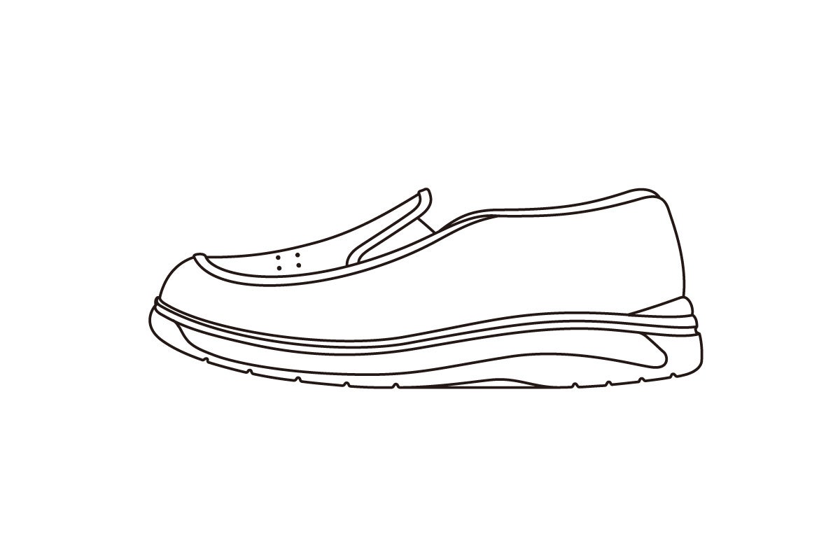 厨房や食品工場で使われるキッチンシューズを、街履きにアレンジしたデイリーユースモデル。クリーンな印象のローファータイプで、カジュアルからワークスタイルまで幅広く対応。水や油で滑りやすい床面にも高いグリップ力を発揮する「マルチストッパーソール」を搭載し、甲部分は耐油性と耐久性に優れた合成皮革でしっかりとカバーされています。