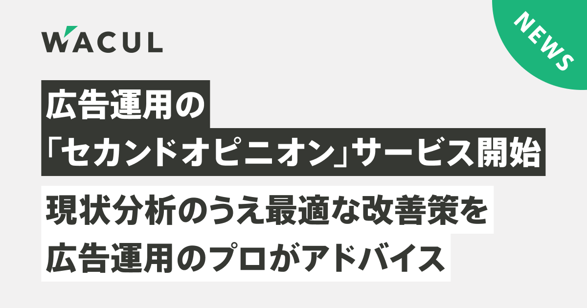 こうした背景から、WACULが長年培った広告運用やデジタルマーケティングの成功ノウハウや知見などをもとに、専門家による『セカンドオピニオンサービス』を提供し、広告を強化したい企業がこれらの課題に向き合えるよう支援していくことを決定しました。運用型広告のプロフェッショナルが客観的に現状を分析し、適切なアクションプランを提示することで、企業の広告運用に新たな光を当て、持続可能な成功への一歩を踏み出すサポートをしていきます。