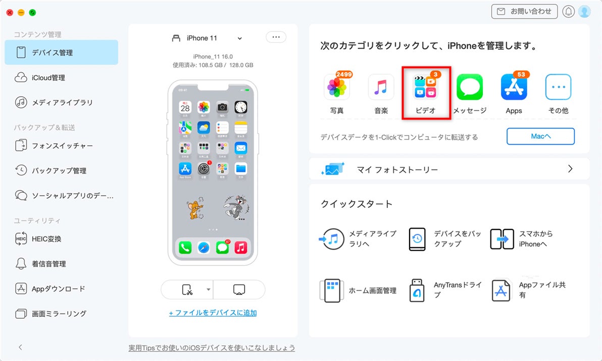 AnyTransはiPhone、iPad、iPod touchユーザー向けの専門的なデータ管理ソフトです。AnyTransを使用すると、iPhoneの動画や写真を簡単かつ快適にパソコンやUSBメモリにバックアップすることができます。