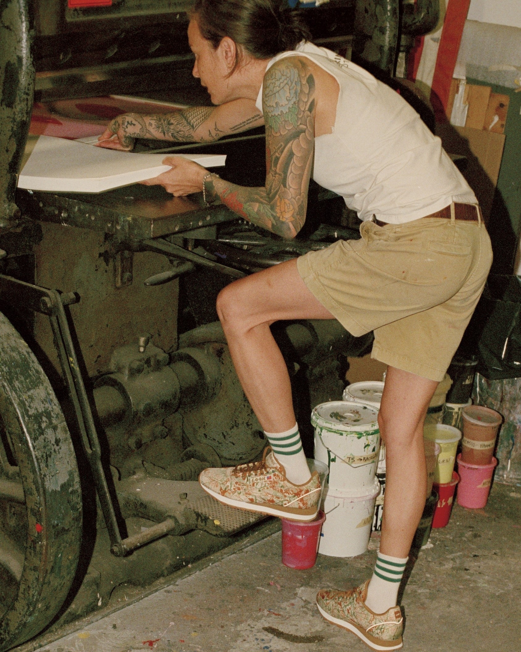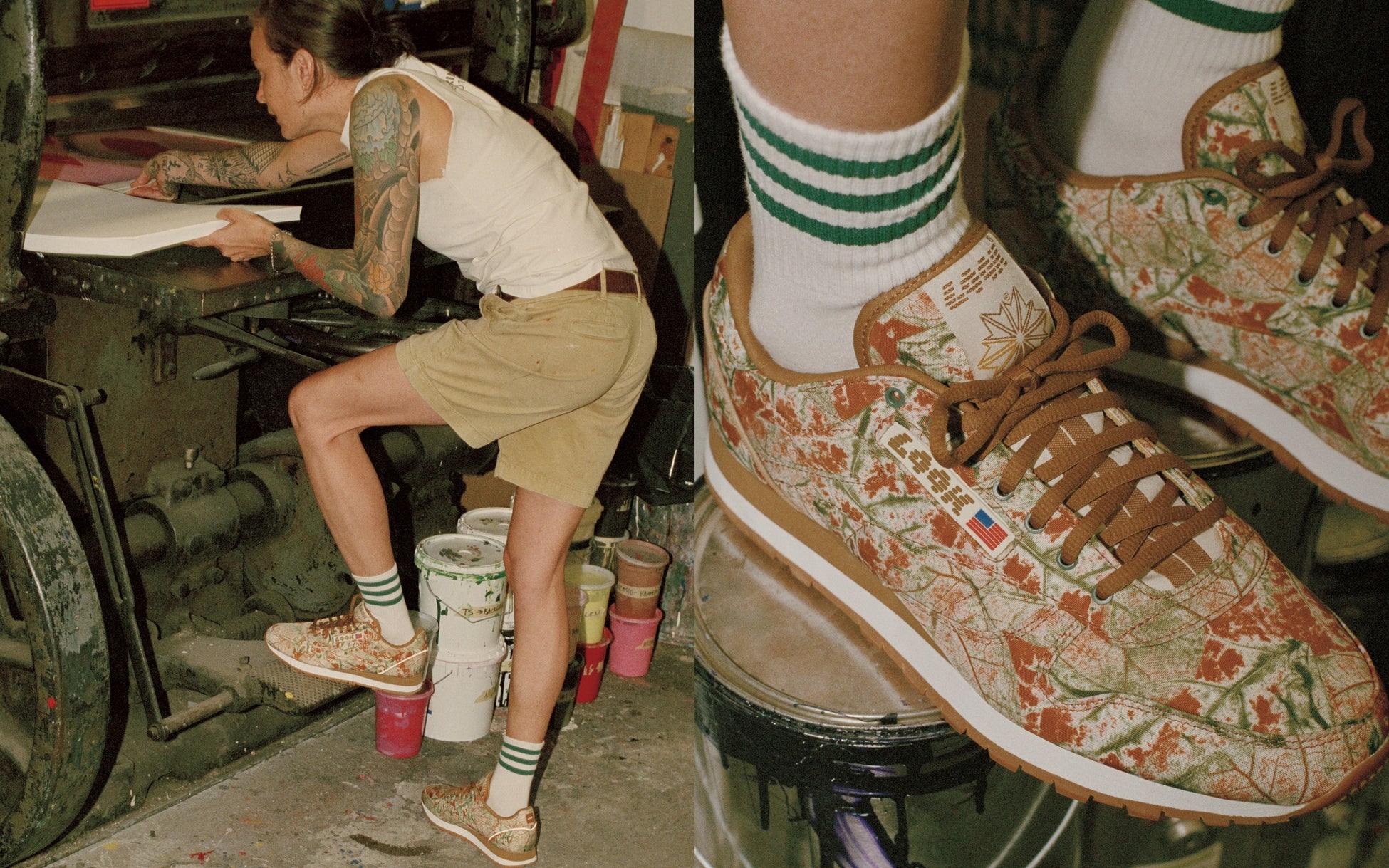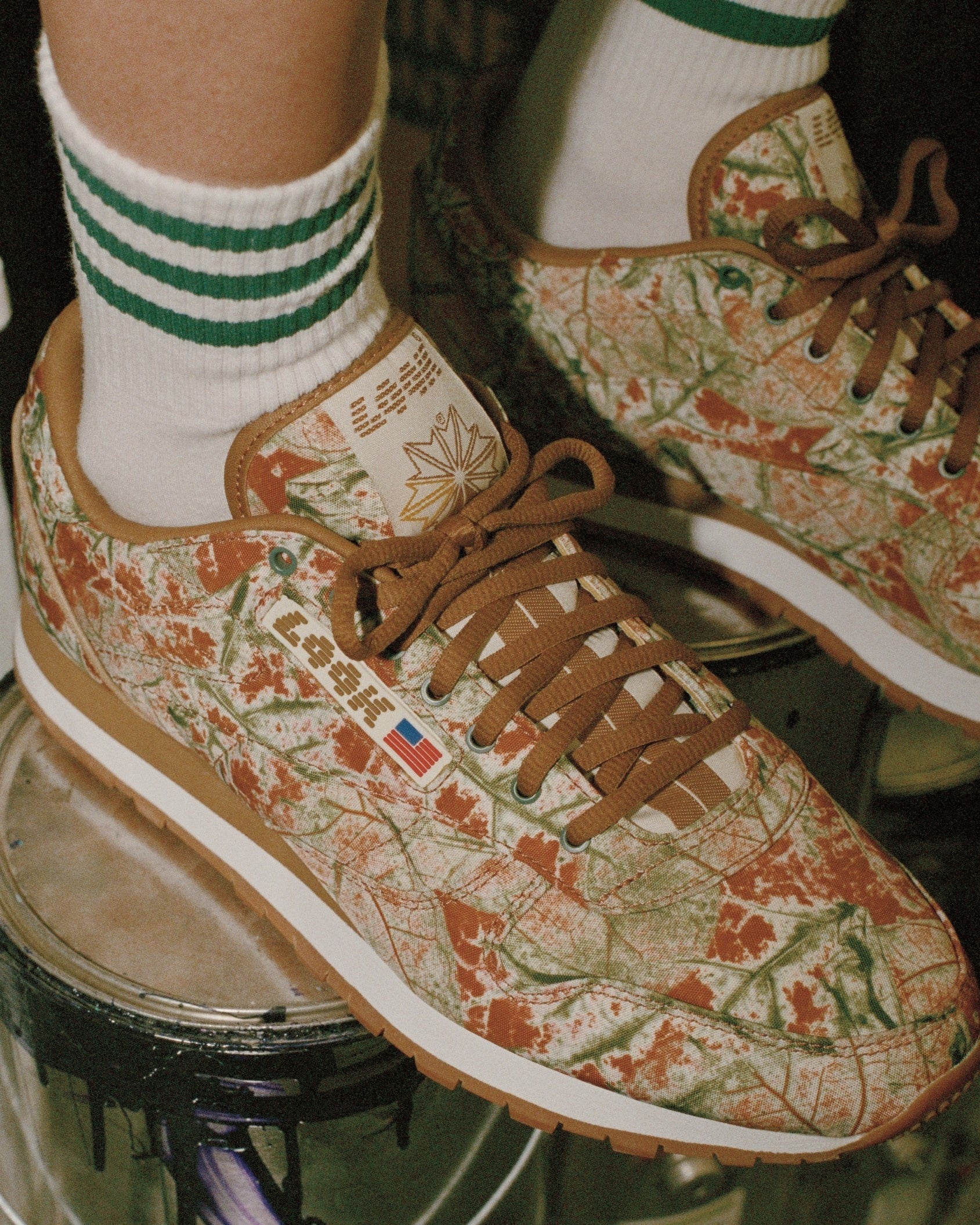 「リーボックは、多くの人々の心の中で特別な位置を占めているクラシックブランドです。そもそも、“ストリートウェア”は、各時代の人々が無意識のうちにその魅力にハマってしまうようなデザインを生み出し続ける、ユニークなアップデートを遂げていると思います。そのため、時代に合った形で常に進化し続けることが重要で、リーボックはその仕組みを積極的に受け入れています。今回、このシューズをデザインした際は、大胆にプリント柄をメインにしようと考えました。そこで生まれたのが、このワイルドなリーフ柄のデザイン、“ザ・プリンターズシューズ”です。」