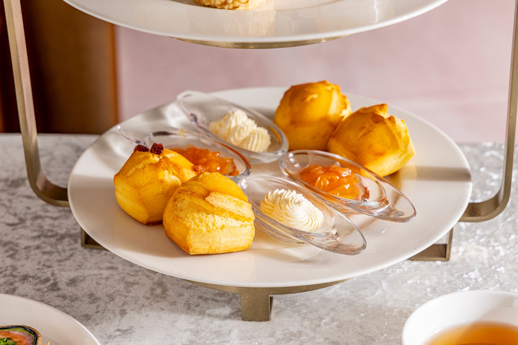 口の中でふわりと広がるチーズの芳醇な香りと、なめらかなチョコレートガナッシュのコクが絶妙に重なり合うチョコレートチーズケーキ、香ばしく焼き上げたベイクドアップルなど、ホリデーシーズンにぴったりのスイーツがぬくもりを添えます。セイボリーには、スイートゴルゴンゾーラのエスプーマとベーコンパウダーを合わせた栗のスープ、海老のバジル香るクリスピーロールなど、心弾む味わいをラインナップ。まろやかで奥行きのある冬のティータイムをお愉しみいただけます。