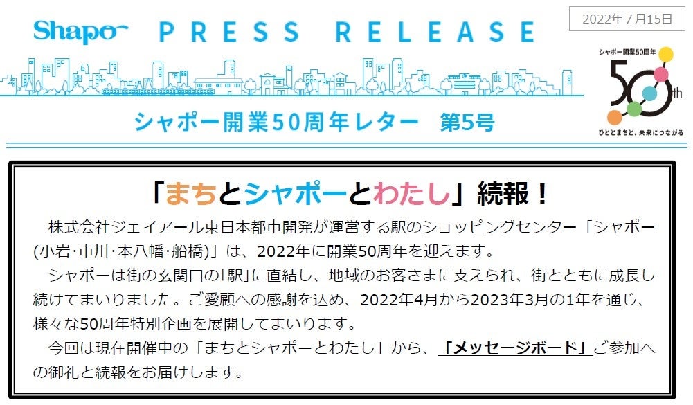 「まちとシャポー」の歴史は、引き続き特設サイトで公開しております。また、SNSからのメッセージも引き続き募集中です。