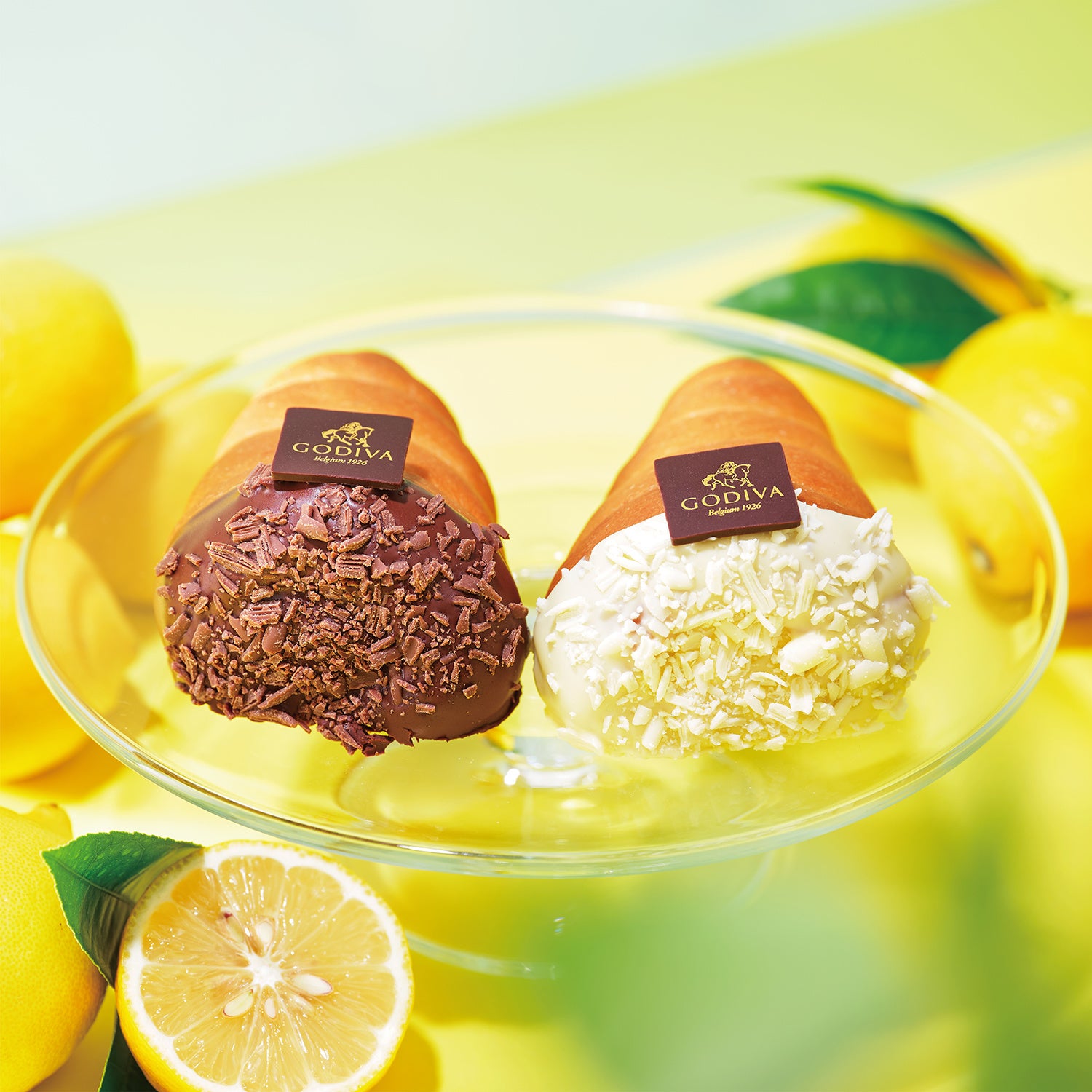 ゴディバのホワイトチョコにレモン風味を添えた季節限定のコロネです。