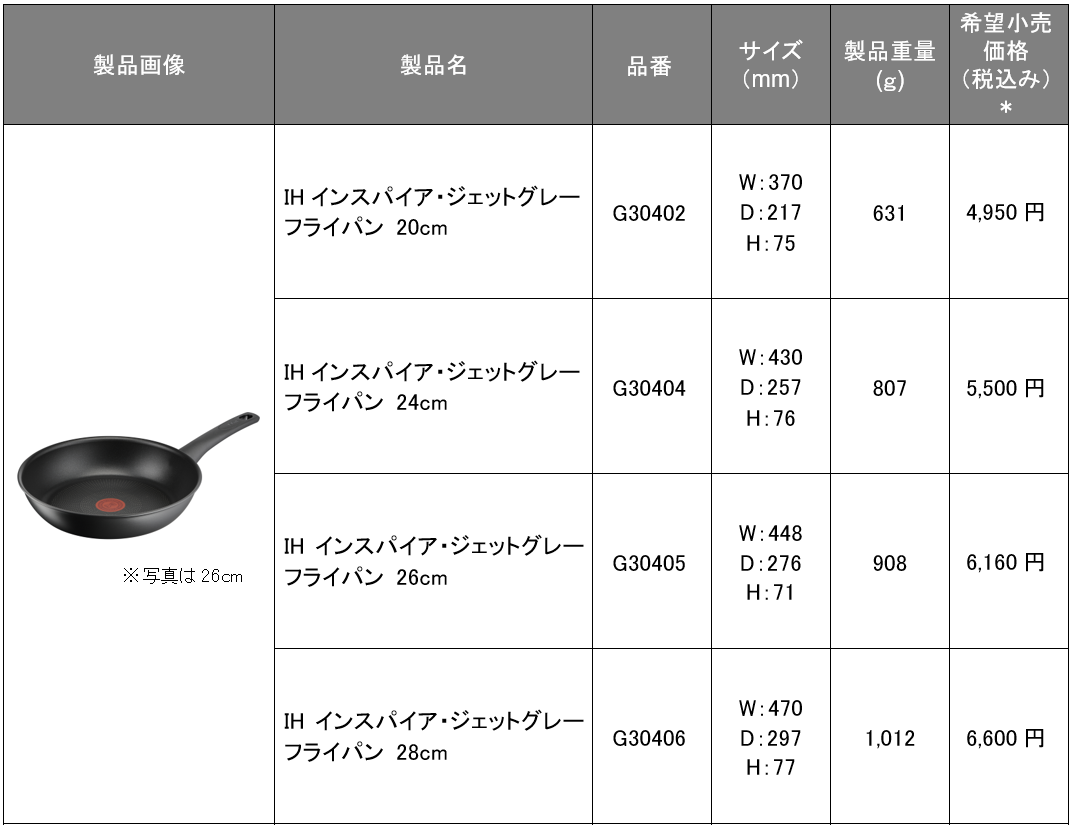 ティファール「IHインスパイア・ジェットグレー」ラインナップ