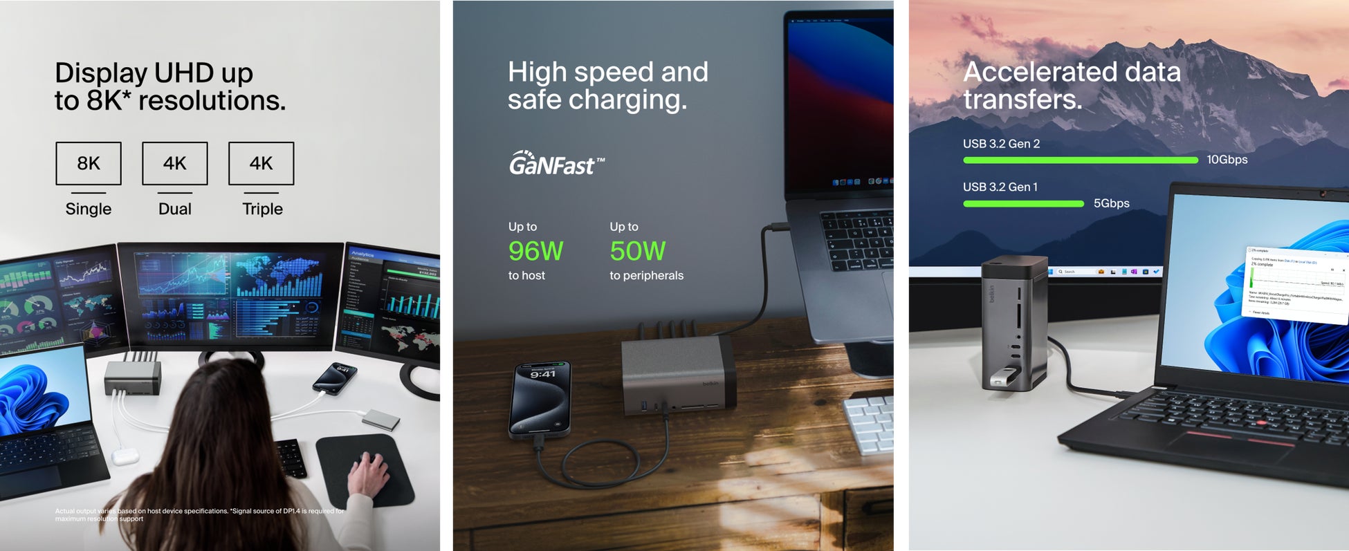 【Belkin】GaN搭載でアダプタ不要。8K/3画面4K@60Hz拡張できる11-in-1ドックConnect USB-C 11-in-1 Pro GaNドック(150W)を発売!