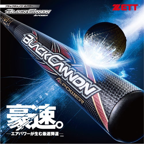 《ZETT》豪速。エアパワーが⽣む最速弾道![※当社比] ⼀般軟式FRP製(カーボン)バット【ブラックキャノン Aパワー】登場!