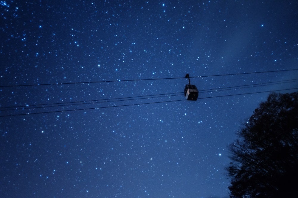 全長2,500m、所要時間15分のゴンドラで標高1,400m地点まで暗闇を進み、街の光が届かない山頂で満天の星とガイドによるトークをお楽しみいただけます。