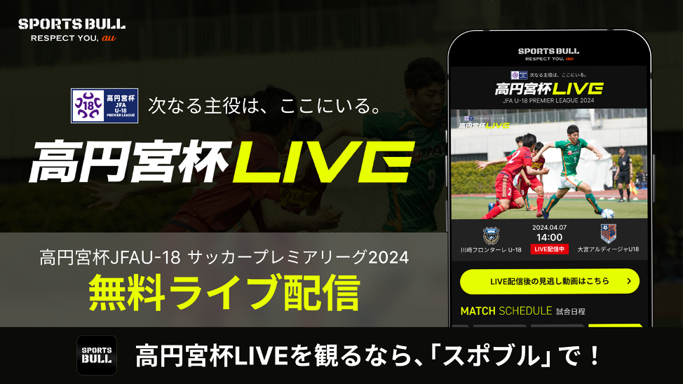 「高円宮杯JFA U-18サッカープレミアリーグ 2024」を「SPORTSBULL」で無料ライブ配信!