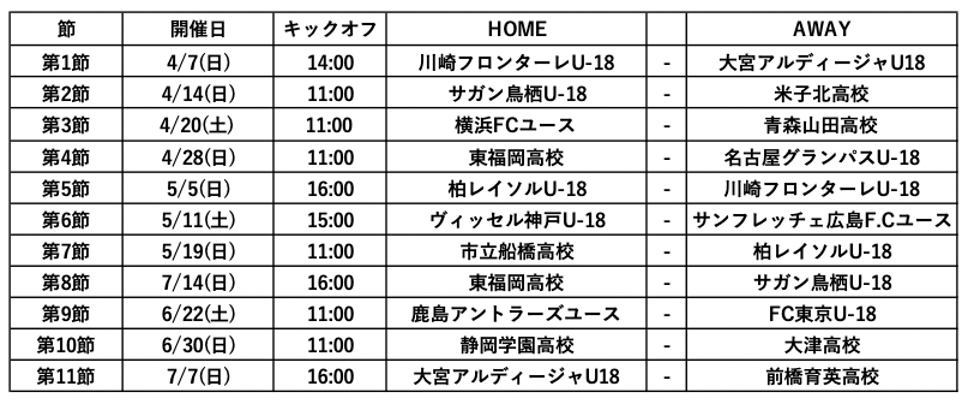 名称:高円宮杯 JFA U-18サッカープレミアリーグ 2024