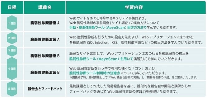 そこで今回、よりスピーディかつ正確な脆弱性診断の体制構築をサポートするべく、エーアイセキュリティラボが提供する脆弱性診断ツール「AeyeScan」を活用した新コース「Web脆弱性診断内製化スキャナ併用コース」を提供開始する運びとなりました。