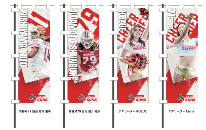 4月7日「九州ボウル」のotonari福岡SUNSメンバーの「のぼり旗」を選ぶことが可能です!
