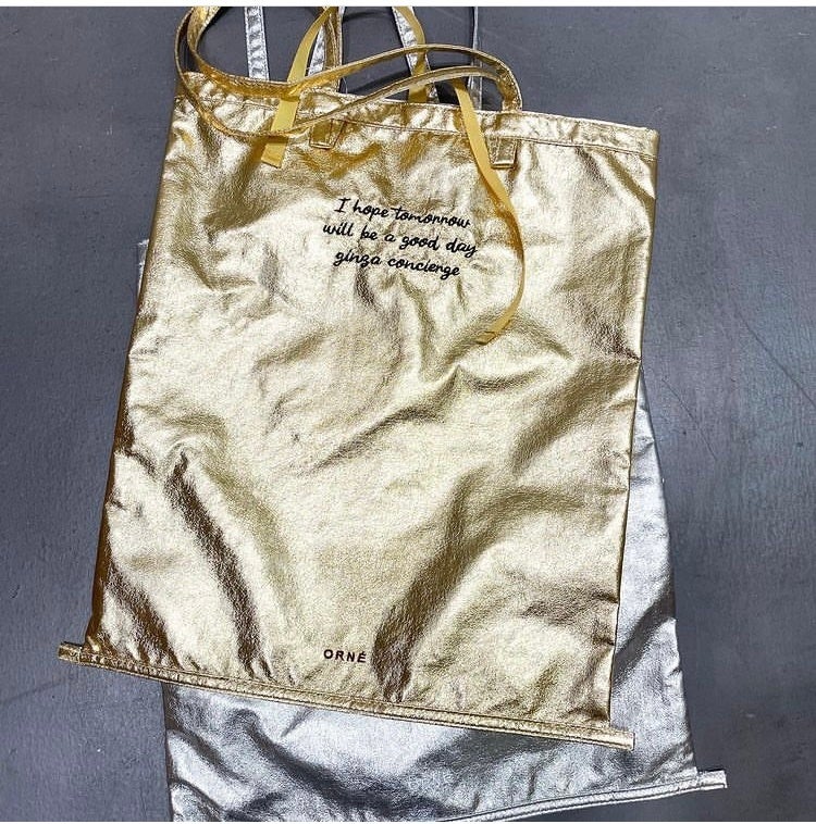 エコバッグとしてもサブバッグとしても便利なA4サイズのフラットトートは、ゴールド・シルバーの2色展開。