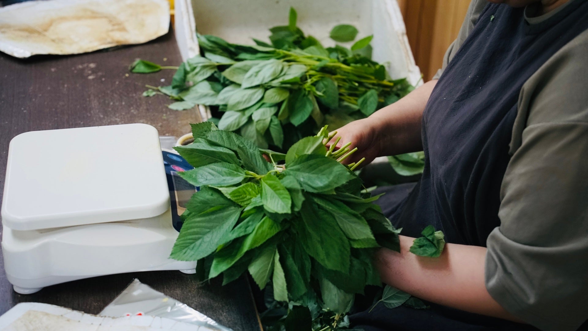 ハウス栽培でのモロヘイヤは、柔らかく歯触りも良い。旨味がたっぷり詰まっています。