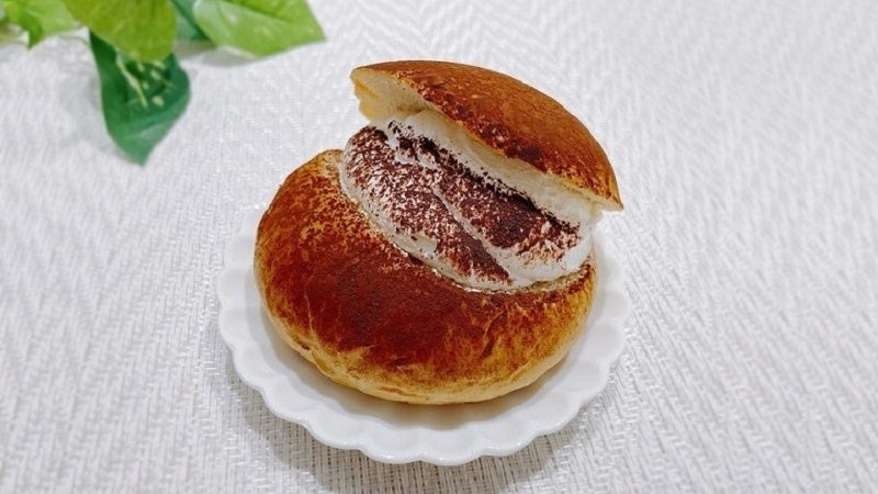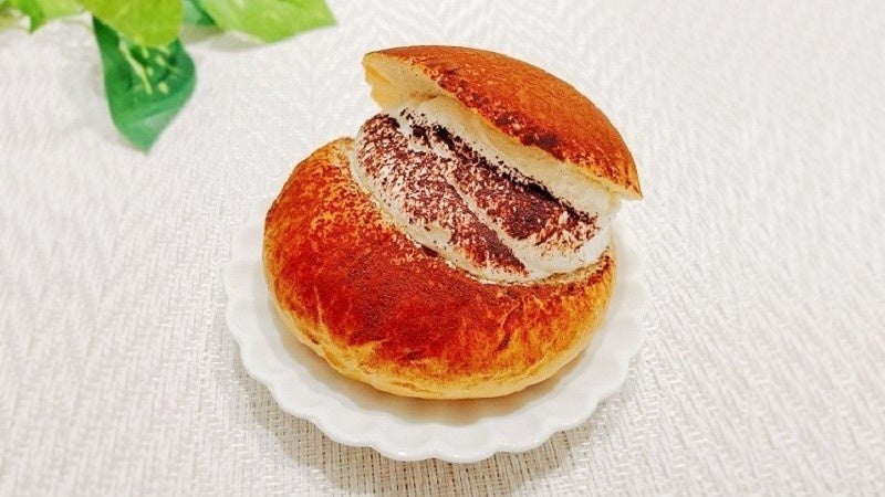 コーヒー風味のブリオッシュパンにマスカルポーネホイップをサンドし、ココアパウダーをかけてティラミス風に仕上げました。