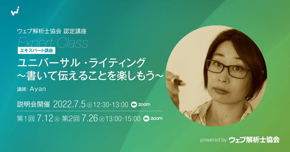 2022/7/12,7/26(火)13:00-15:00 【エキスパート講座】ユニバーサル・ライティング 〜書いて伝えることを楽しもう〜