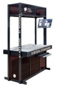 アパレル製品の採寸作業を自動化する装置です。画像解析AI技術を使い、専用カメラで1枚撮影するだけで瞬時にサイズの実寸の計測を済ませ、モニター画面に計測結果が投影されます。高い計測精度を保ちながら従来の手作業時間を大幅削減し、計測データを蓄積していくことも可能です。