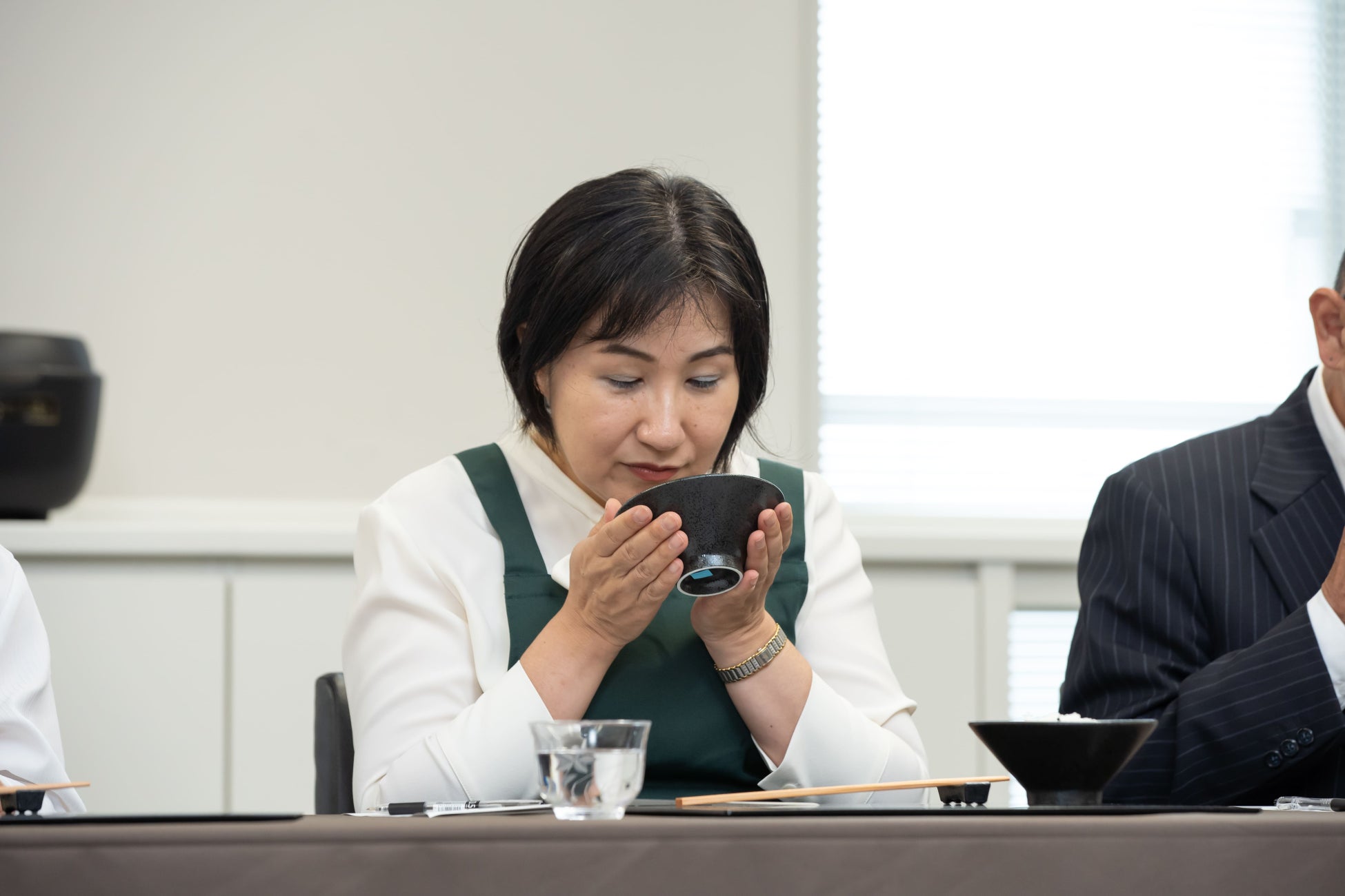 続いて、食味の鑑定に移ると、一口一口を噛みしめるように時間をつかってごはんのおいしさについて評価が行われます。「ごはん一粒ひと粒がしっかりとしていて、もっちりとした食感が楽しめる」「口に入れた瞬間に広がる甘みと芳醇な香りが印象的で、噛むほどに旨みが増していく」など、口当たりや噛んだときの粒感、甘みや旨み、粘り気など、お米のプロフェッショナルならではの感想が語られました。