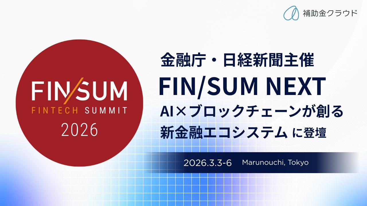 補助金申請支援および経営コンサルティングを展開し、金融機関や士業等の補助金申請支援業務をDXするクラウドサービス「補助金クラウド」を運営する株式会社Stayway(本社:大阪府大阪市、代表取締役:佐藤淳、以下「当社」)は、金融庁および日本経済新聞社主催のFINTECH SUMMIT 2026「FIN/SUM NEXT|AI×ブロックチェーンが創る 新金融エコシステム」において、パネルディスカッションへの登壇、当社主催セッションの開催、ならびに展示出展をおこなうことをお知らせいたします。
