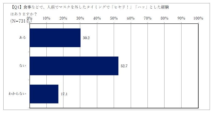 - 質問1:食事などで、マスクを外したタイミングで「ヒヤリ!」「ハッ」とした経験はありますか?