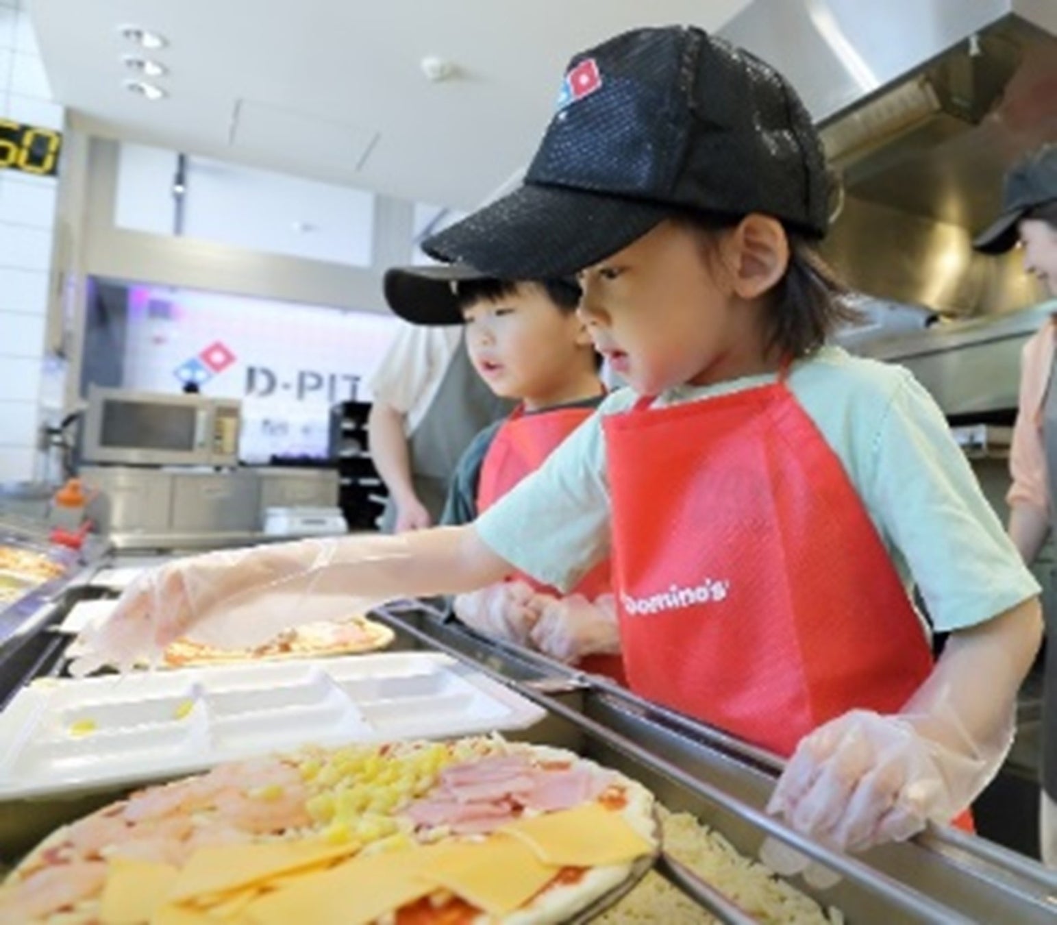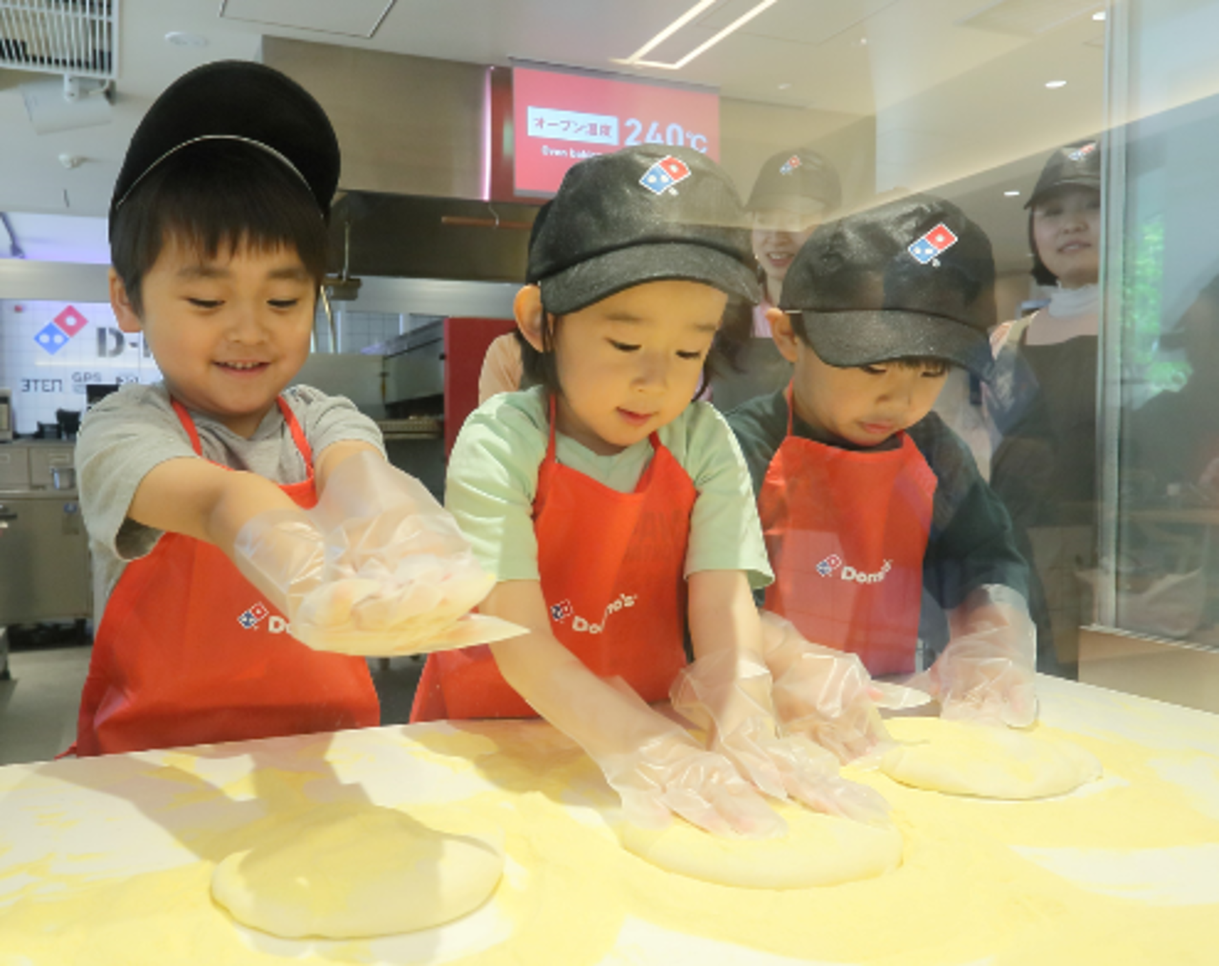 特典:認定証授与、ドミノ・ピザオリジナルのエプロンとキャップをプレゼント(大人の方は、エプロンとキャップは貸出となります。)