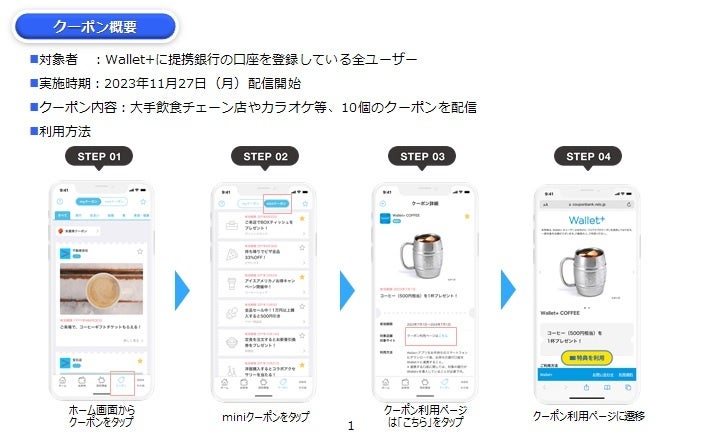 銀行公式アプリ「Wallet+」、全国で使えるクーポンを配信開始
