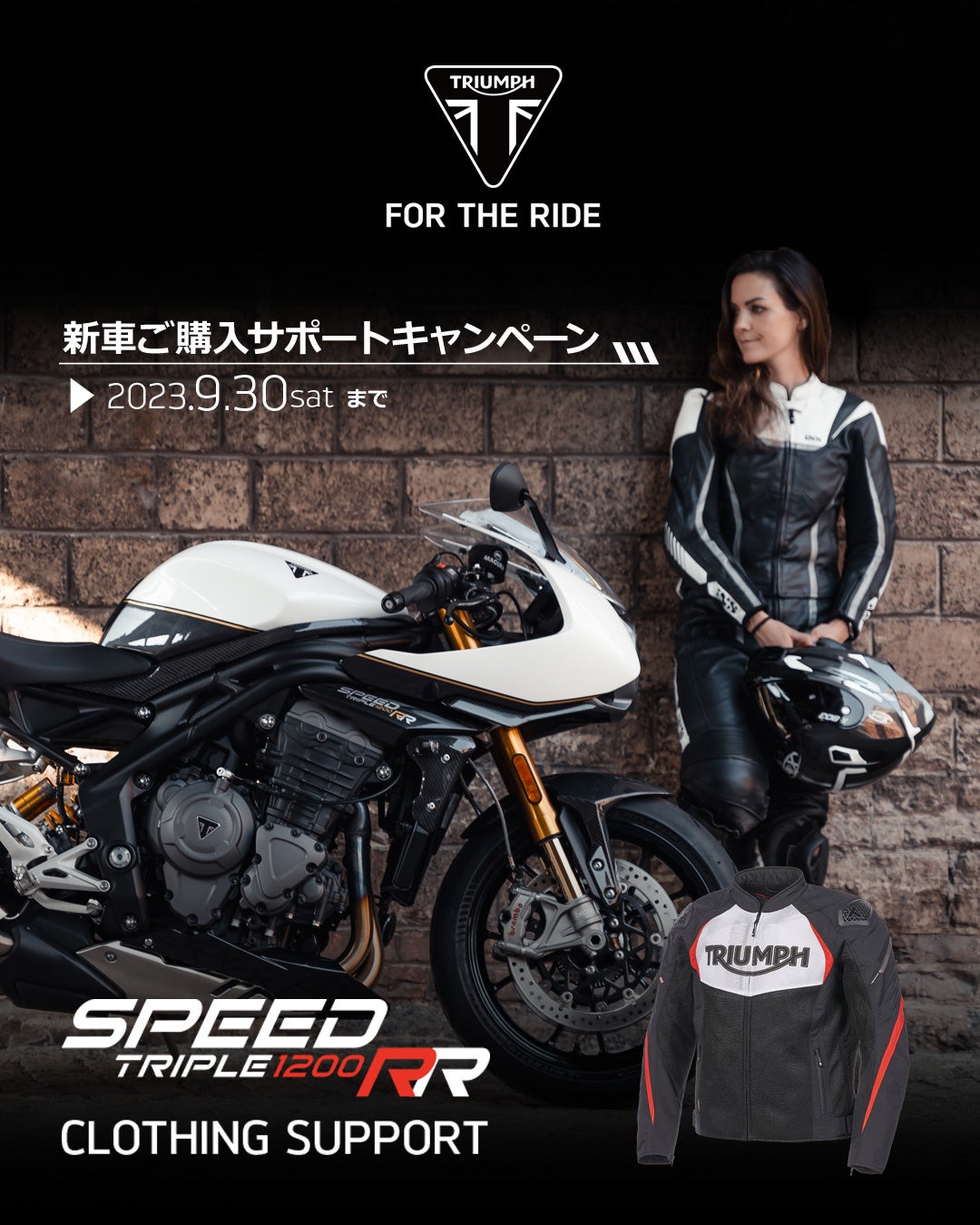 Speed Triple 1200 RR の新車をご購入された方を対象に5万円分(税別)のクロージング(衣類)をプレゼント!