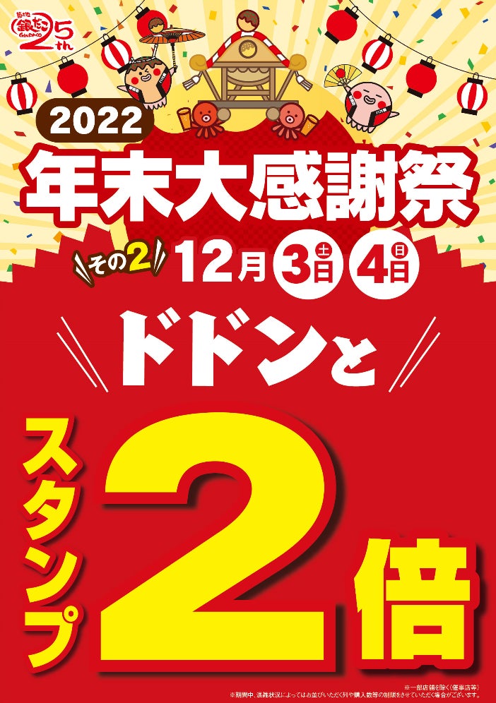 実施内容:たこ焼(1舟6個入り以上)のご購入で、銀だこスタンプカードのスタンプ2倍