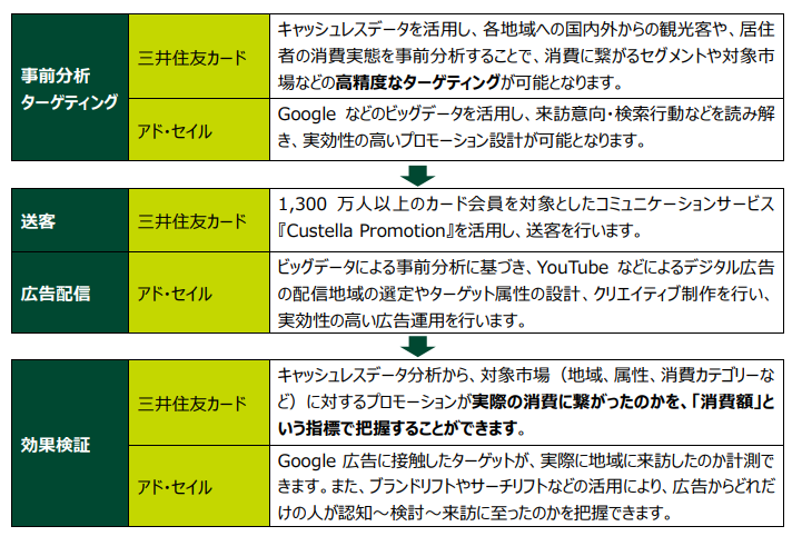 三井住友カードとアド・セイルは行政・自治体に求められる、データに基づく戦略的なアプローチとして行政・自治体による観光マーケティング施策をサポートすべく、本サービスを開始しました。