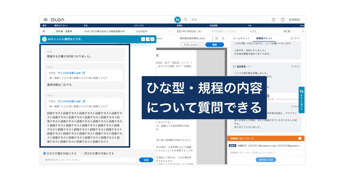 GVA TECH株式会社(本社:東京都渋谷区、代表取締役:山本 俊、以下GVA TECH)は、全社を支える法務OS「OLGA」のAI法務アシスタントモジュールにて、新たに「ひな型・規程AI」機能をリリースしたことをお知らせいたします。
