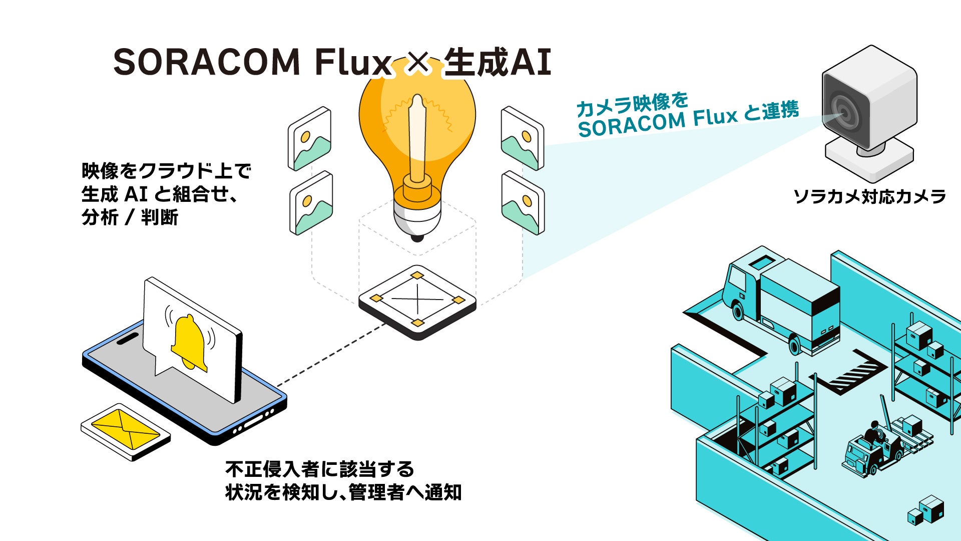 株式会社ソラコム(本社:東京都港区、代表取締役社長 玉川憲)は、大塚倉庫株式会社(本社:大阪府大阪市、代表取締役社長 濵長一彦)が、IoTプラットフォームSORACOMを採用し、カメラと生成AIを活用した倉庫の侵入検知システムを共同で開発したことを発表します。共同開発では、IoTアプリケーションをローコードで開発できるサービス「SORACOM Flux(ソラコムフラックス)」を活用したことで、短期間で生成AIを使った侵入検知の仕組みの高度化を実現しています。