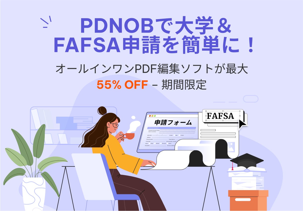 PDF編集ソフトPDNobで大学FAFSA申請をサポート‐特別割引キャンペーンを実施