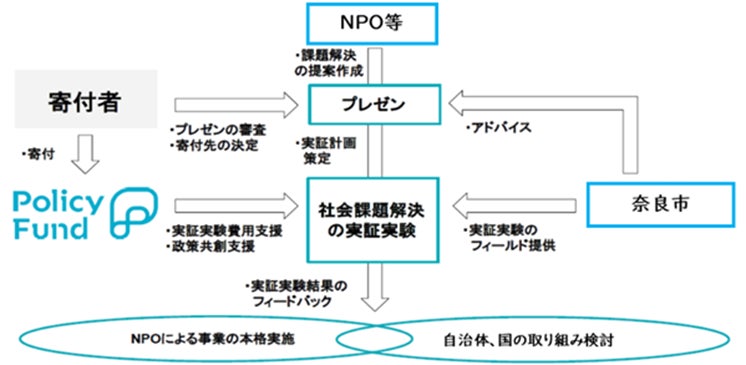 また、その取り組みの一環として同社が設立した寄付基金「Policy Fund」を活用し、全国のNPO等から、奈良市の社会課題の解決に資する企画募集ならびに新スキームを開始いたします。