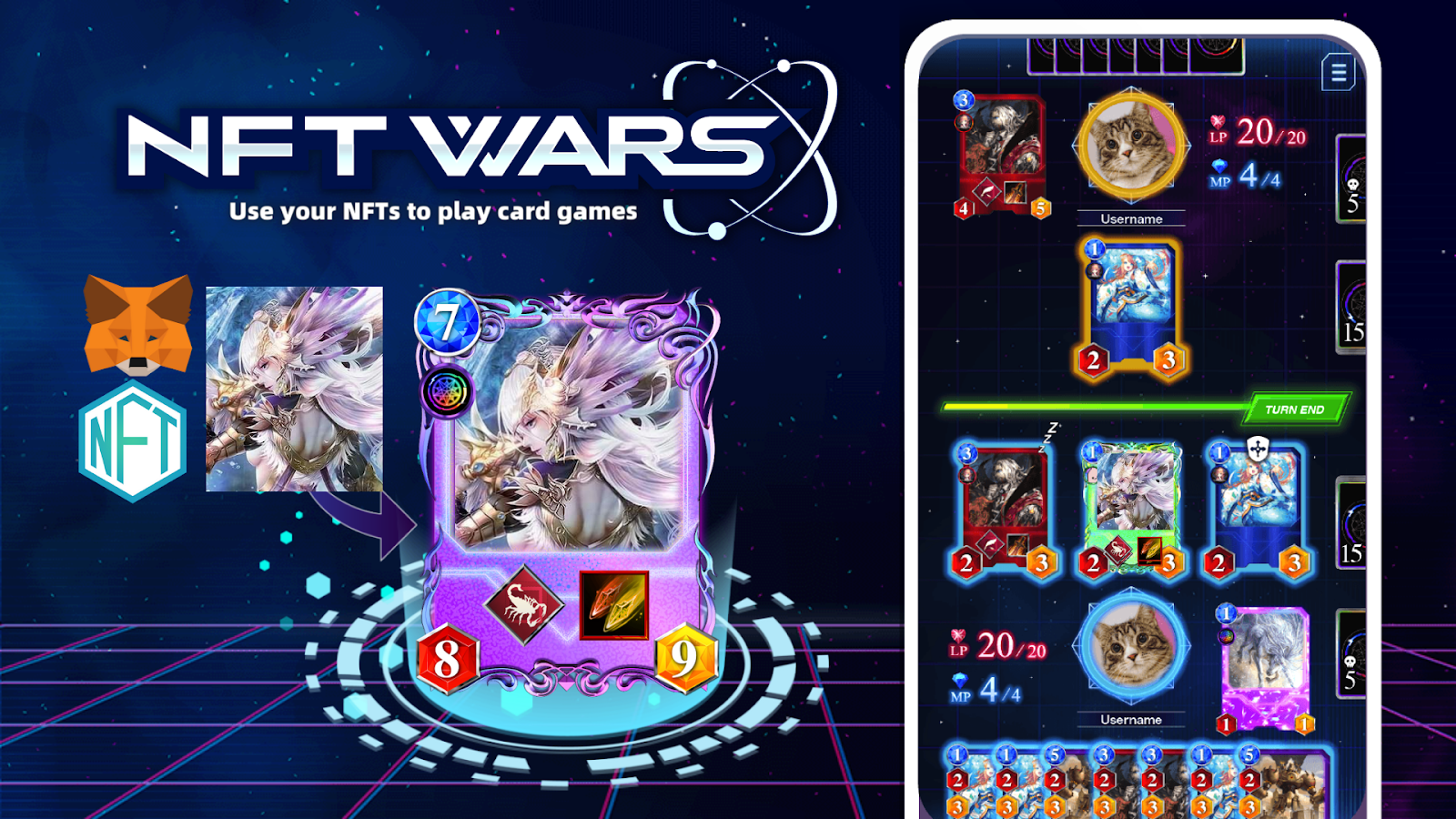 『NFTWars』は、手軽にNFTプロジェクトにゲームのユーティリティを付与できるサービスです。ユーザーはウォレットで所有するNFTを使用し、様々なNFTプロジェクトのカードゲームで遊ぶ世界の実現を目指します。