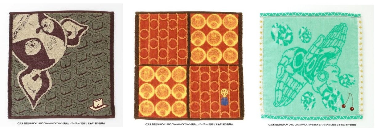 1879年(明治12年)創業のブルーミング中西株式会社(本社 東京都中央区 取締役社長 中西一)は、アニメ『ジョジョの奇妙な冒険 スターダストクルセイダース』の世界観をデザインに盛り込んだハンカチ、タオル、ポーチの3アイテムを12月6日(水)から当社直営のオンラインショップ【ハンカチーフギャラリー】及び、一部百貨店、自動販売機(全国8カ所)で発売します。