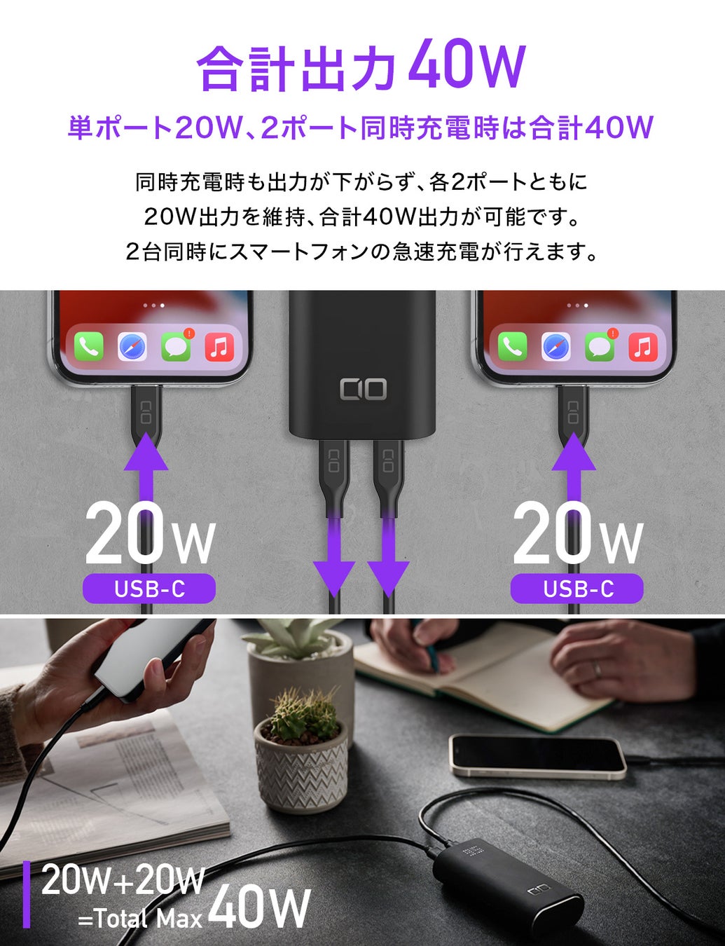 ◆単ポート最大20W・2ポート合計40W出力に対応