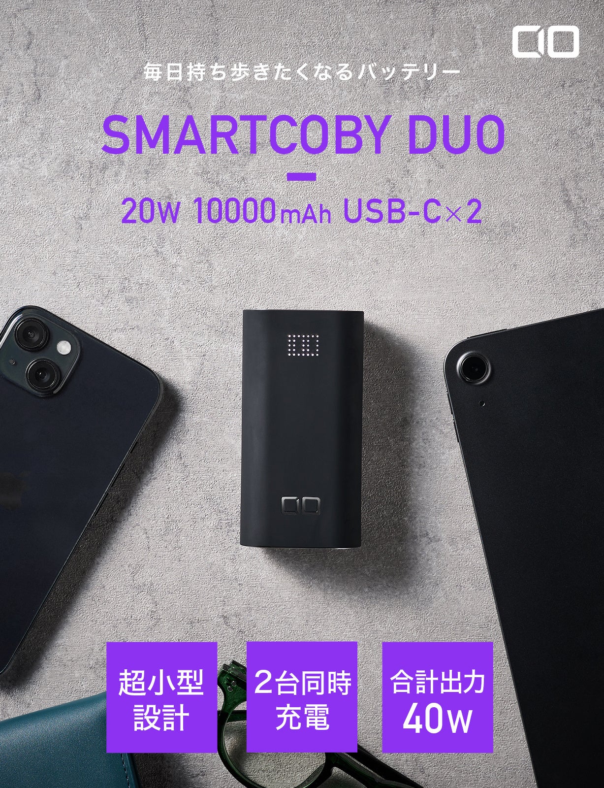 生活様式の変化にもあわせ、あらゆるシーンでの『使いやすさ』と『多機能性』がモバイルバッテリーに求められています。そんな時代に、CIOの強みである『多機能』×『最新テクノロジー』を掛け合わせる事で、コンパクトでかつ大容量それでいてパワフル、機能性抜群、そんな毎日持ち歩きたくなる理想のモバイルバッテリーが誕生しました。