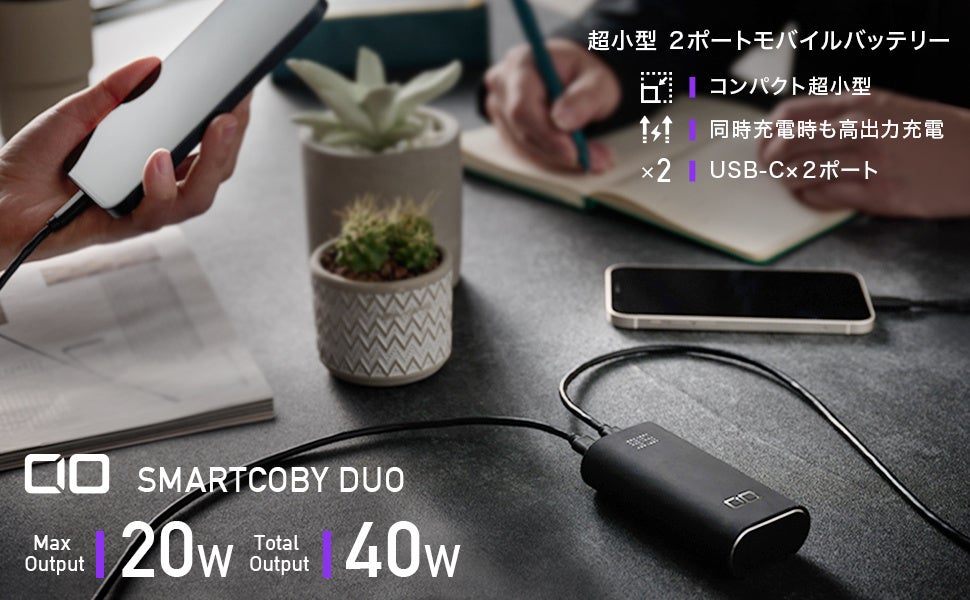 超コンパクトサイズなのにパワフル!合計40W出力に対応 急速パススルーを搭載したUSB Type-C2ポート搭載のモバイルバッテリー『SMARTCOBY DUO』をリリース