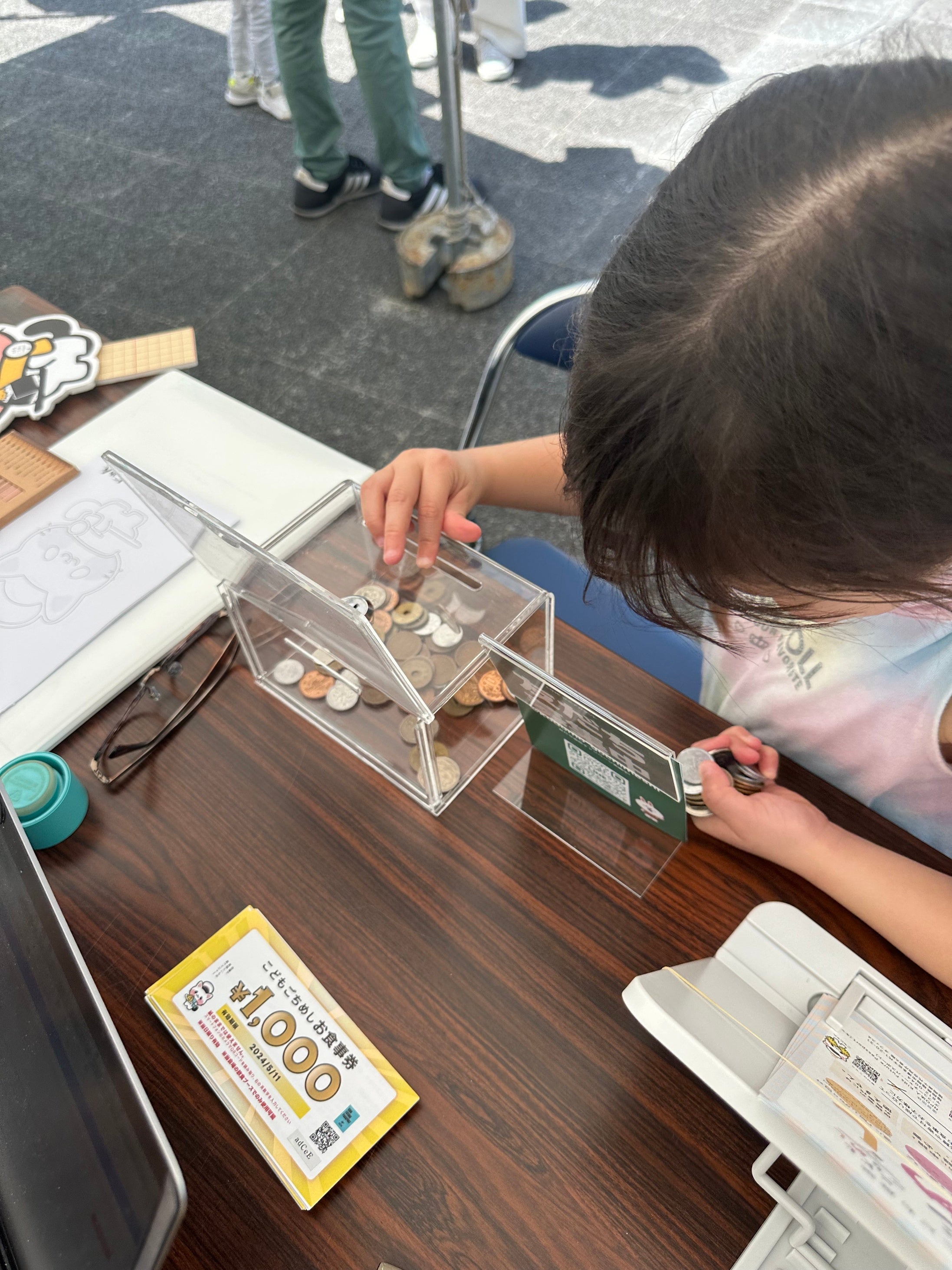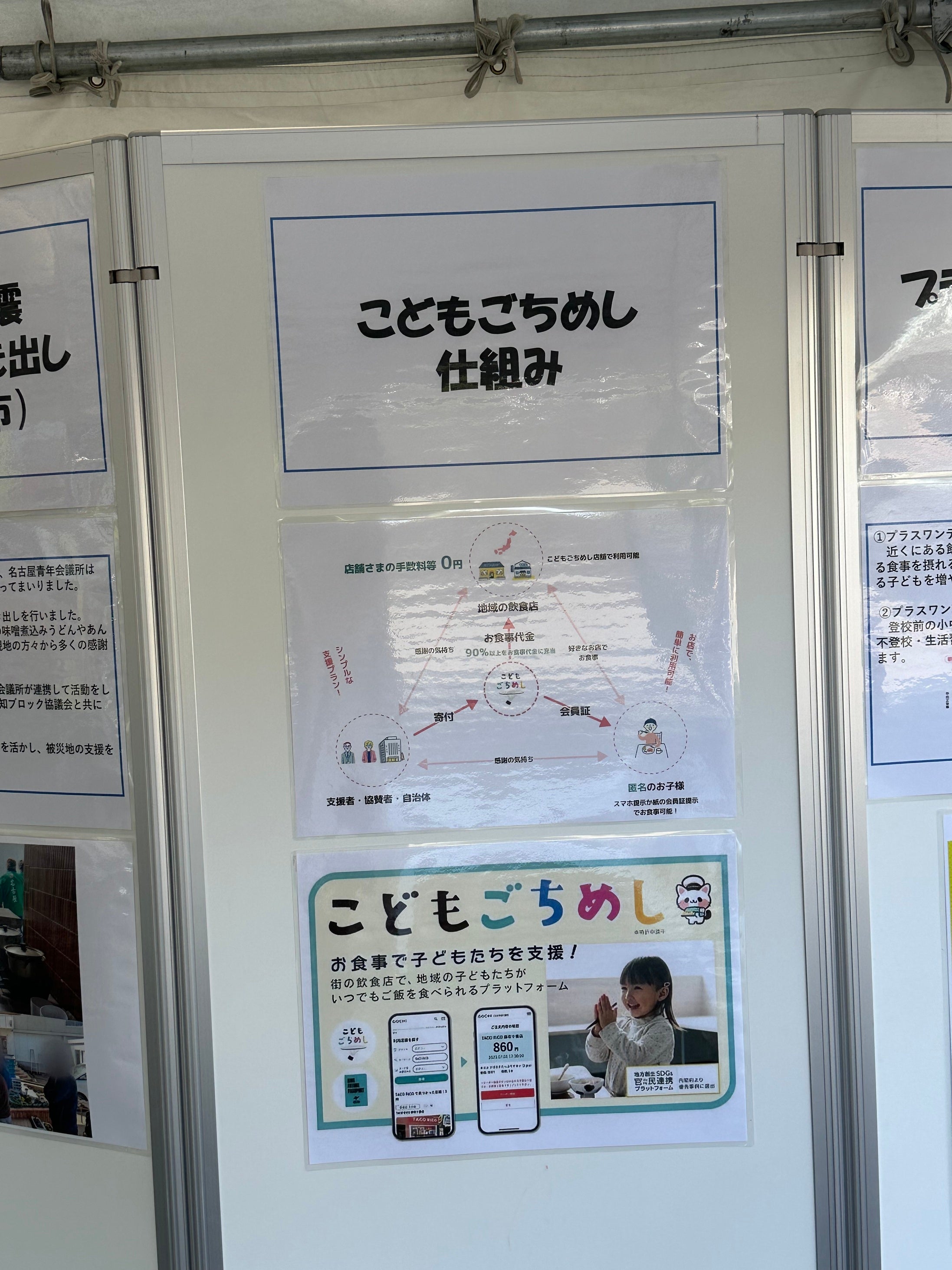 また、ブース内では「こどもごちめし」の仕組みに関する展示を行い、ご来場いただいた方にこどもごちめしについてご説明しました。ブースに設置した「こどもごちめし」への募金箱には、たくさんの心温まる支援が集まりました。